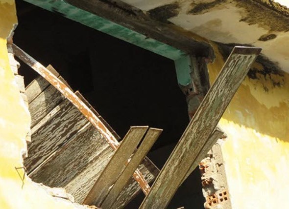 Gạch ngói ngổn ngang, tường vỡ vụn
